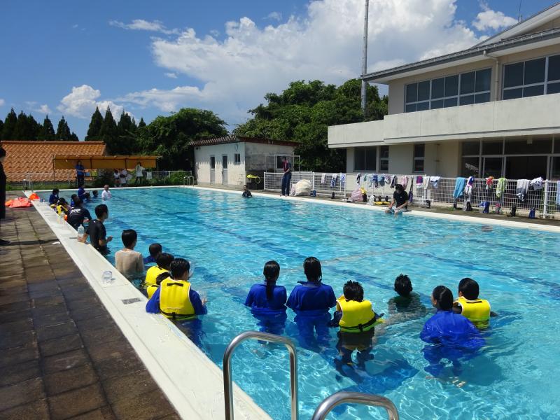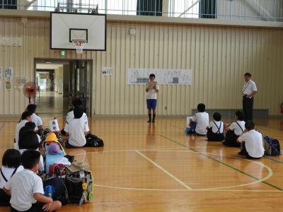 子ども達は、安全に楽しく水泳学習を行うために、一生懸命話を聞いていました。