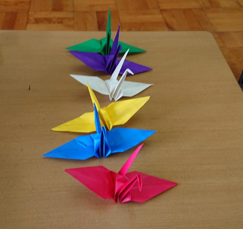 8月8日(火)、全校登校日に日本で起きた戦争について学びました。ひまわり学級では、世界の平和を願いツルを丁寧に折りました。