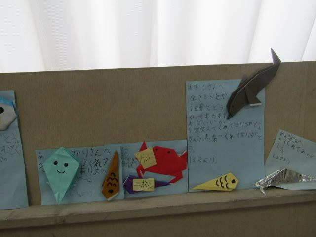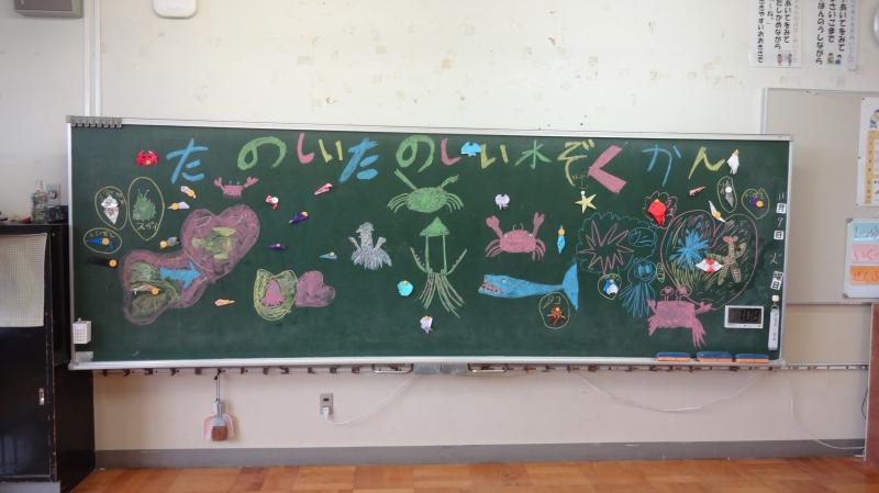 3年教室に2年生から「楽しい水族館」の招待状があります。