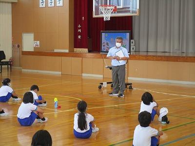 7月31日のプール最終日に能登海上保安署の方を招いて着衣泳の学習を行いました。