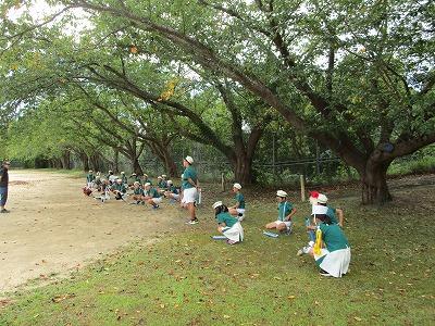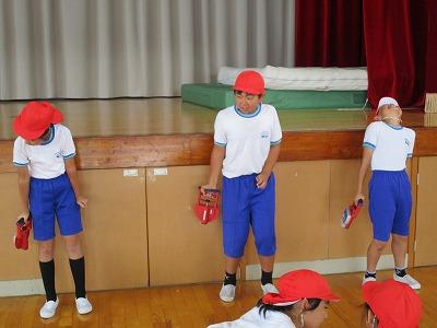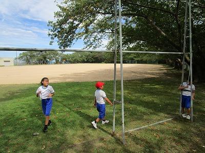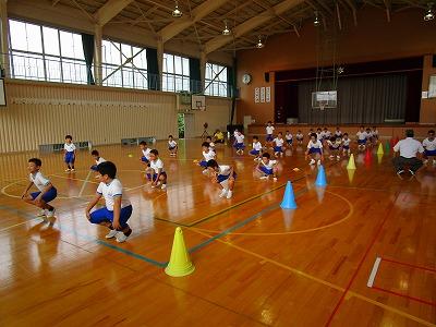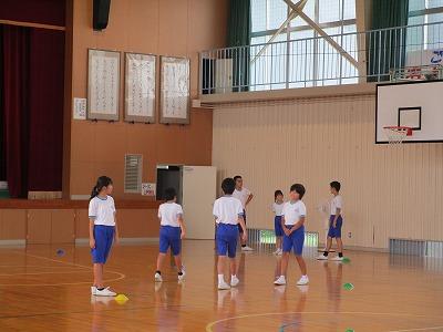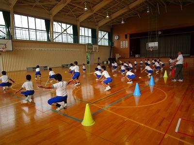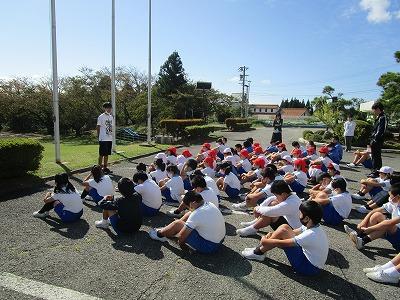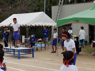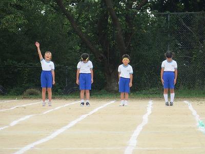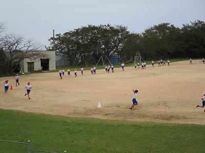 学年ごとに各種目の場所に行きます。担当の先生にしっかりと礼をします。