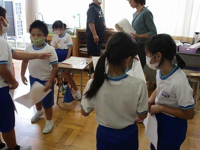 本日、能登町「町会区長会連合会 能都・内浦・柳田支部様」より、全校児童に夏用のマスクを1人に3枚ずついただきました。