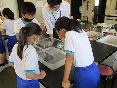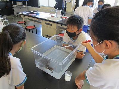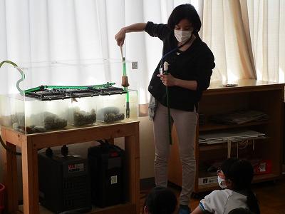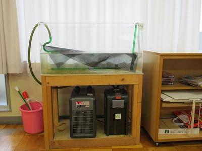 里海教育研究所のご協力を得、海水を循環させる装置でしばらくの間教室で飼育します。