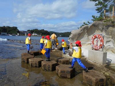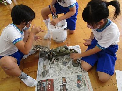 2年生はイカ、クジラ、マンボウチームで砂や石で住み家をつくります。