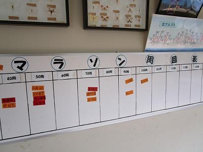 何週走ったかカードに記録し、周回表のネームプレートを動かします。