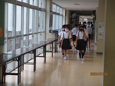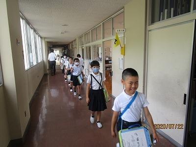 小木小学校では整列して教室の移動をします。