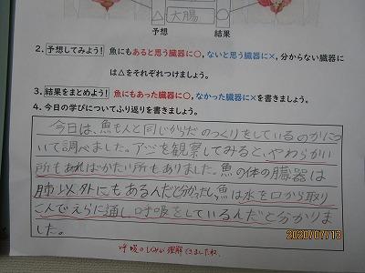 6年生の魚の解剖のふりかえりです。