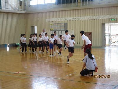 6年生の体育でのリレーの学習です。写真を