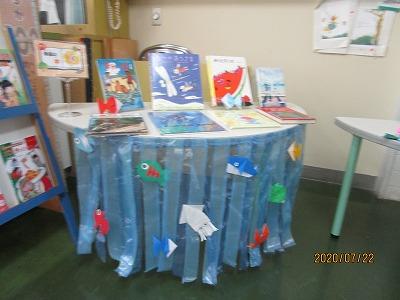 図書室の季節の本が夏仕様です。