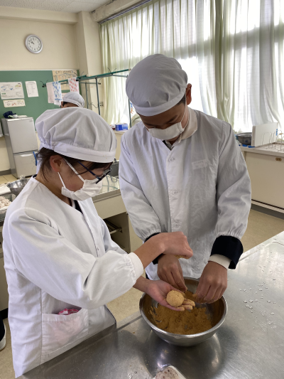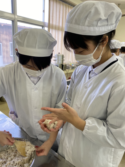 秋に収穫した古代米を使って,6年生がおはぎ作りを行いました。