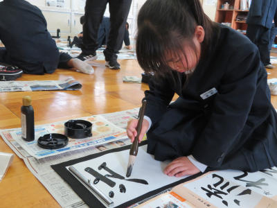 いよいよ始まった3学期、その初日に校内書き初め大会が行われました。