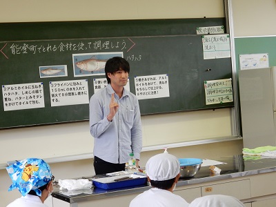 今日は里海科の授業として、『奥能登食材流通機構』の職員である石上さんより、能登で獲れた「ハタハタ」を提供してもらい、調理実習を行いました。