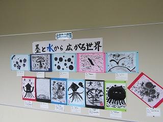 6年生の作品です。墨と水で濃淡、筆勢で表現しています。