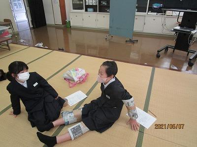 関節を新聞紙てロックして動けるか体験中です。