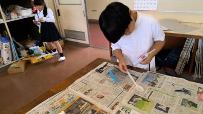 3年生は、海ごみを使って、海の生きもの作りに取り組みました。初めは魚などに見立てることが難しいと感じたけれど、一つ、魚ができると、次々と思い付き、たくさんの海の生きものを作ることができました。