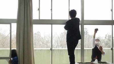 集会委員会が朝の挨拶運動後の振り返りをしています。