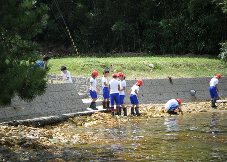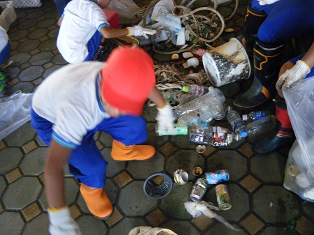 清掃ということであらためて海を見ていると色んなゴミが落ちていることに驚いてる様子でした。