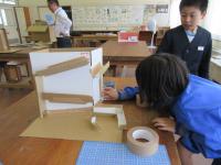 4年生は,ビー玉を転がして楽しく遊ぶものを作っています。段ボールを材料に,転がすことを試しながら・・・アイデアいっぱいのビー玉コースターがもうすぐ完成します♪