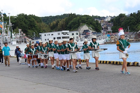 イカす会は,5,6年生の鼓笛隊パレードで始まりました。