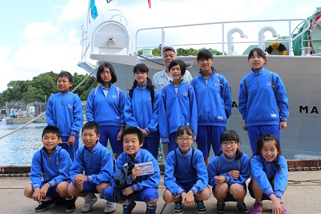 6年生は,白山丸に乗船し,イカ釣り漁の見学・体験をしました。