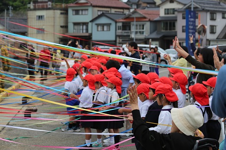 一人ひとりテープを持ち,全員で「いってらっしゃい。」とお見送りしました。