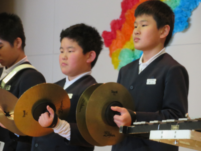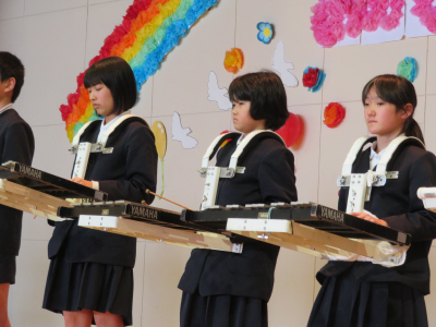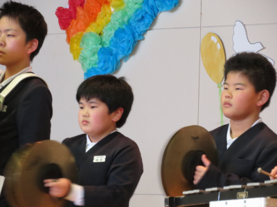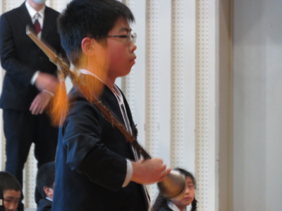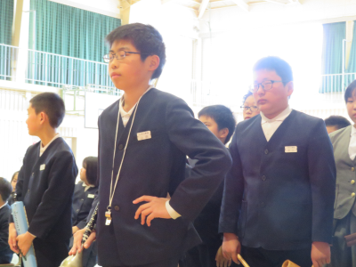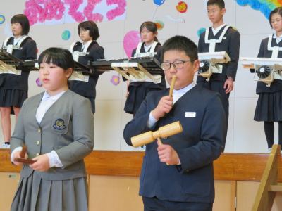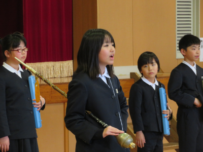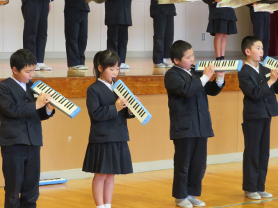 毎年この時期に行われる引き継ぎ式では,1年間伝統を守ってきた5,6年生が最初に演奏します。