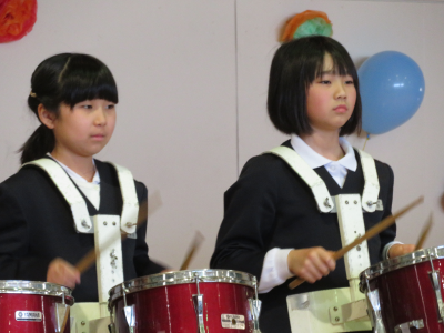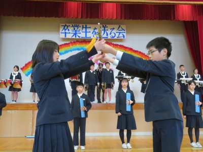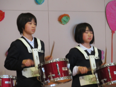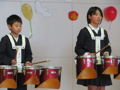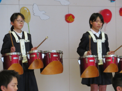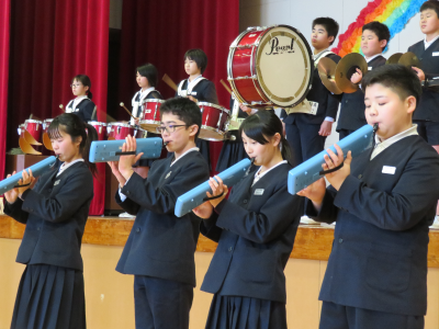 卒業生を送る会にあわせて鼓笛隊の引き継ぎ式が行われました。