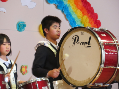 運動会やイカす会,秋祭りのパレードなど経験を積んだ5・6年生の演奏は流石で,音が綺麗にそろい素敵な音を響かせていました。これが最後の演奏となると寂しさもありますが,在校生には高学年の力強さや凛々しさが伝わったのではないかと思います。
