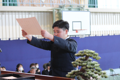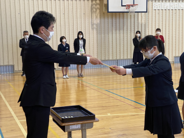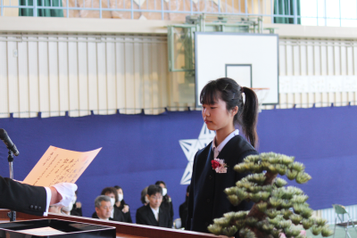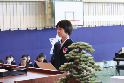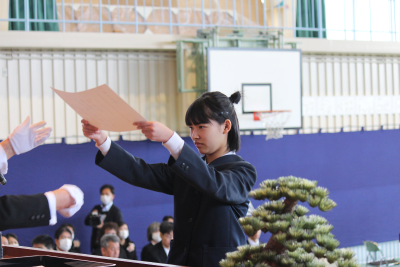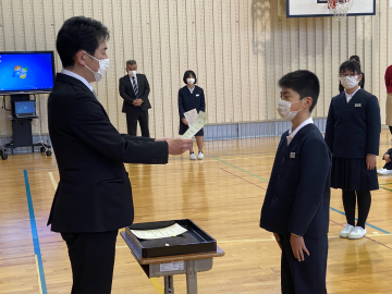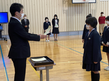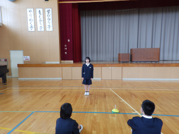 委員長は任命書をもらった後で全校の前で抱負を述べます。
