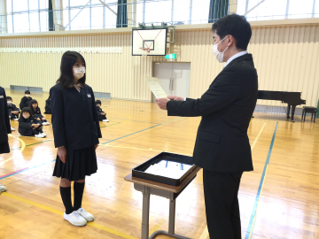 卒業証書をもらう子どもたちの顔はとても凛々しく,しっかりと前を向いていました。4月から始まる中学校生活に不安もあるかもしれませんが,小木小学校で仲間と共に学んだことを胸に,力強く成長していくことを祈っています。