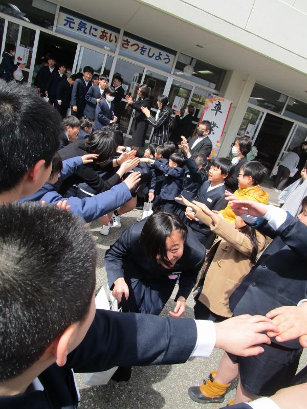 卒業生は、玄関で在校生・保護者の皆様・避難所の皆様に見送られ、巣立っていきました。中学校へ行っても、頑張ってくださいね。いつまでも、応援しています。