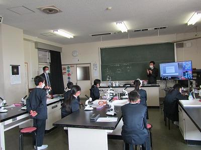 5年生の里海科です。里海研の浦田先生を招いてウニの授精の学習です。