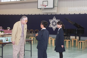 越坂の養蜂業 井上恵三様と治子様が3日、本校を訪れ、