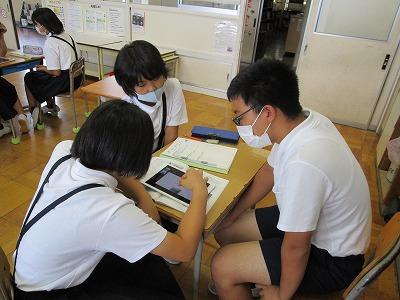 6年生がリモート交流で小木の紹介をします。