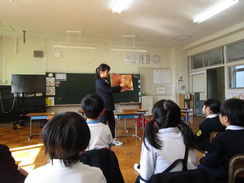 学校職員と図書館指導員による朝の読み聞かせがありました。