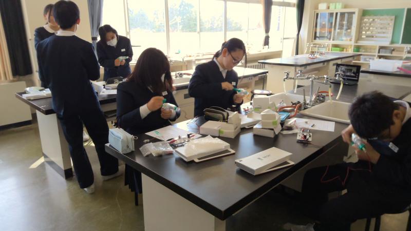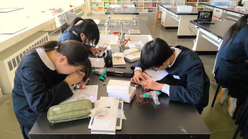 6年生が理科で「電気とわたしたちのくらし」についての授業を行いました。株式会社 島津理化から講師をお招きし、発電、蓄電、豆電球とLEDの使う電気の量の違いを学んだあと、プログラミングに挑戦しました。防犯ベルやエスカレーターがどんな仕組みになっているか考えながら、プログラムをつくることができました。プログラミングを通して、電気を音や動きに変えたり、省エネになるプログラムを考えたりすることに、楽しんで取り組むことができました。