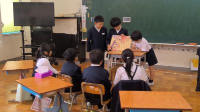 3年生は国語「おすすめの1さつを決めよう」で、「1年生が今よりもっと本をすきになってくれるような楽しい本を紹介する」ことを目的に、話し合う学習をしました。自分が選んだ本を手に、進行に沿って意見を出し合いました。決まった本を1年生へ読み聞かせをすると、みんな楽しそうに聞いてくれました。