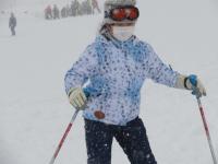 スキー場の天気は雪で,少し寒い中での活動となっていますが,子どもたちはとても楽しそうにスキーに臨んでいます。