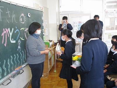 教室にもどりプレゼント渡しと木下さんのスピーチです。