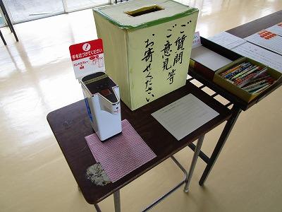 本日の卒業生を送る会の受付時のお願いです。手指消毒及びマスク着用をお願いします。