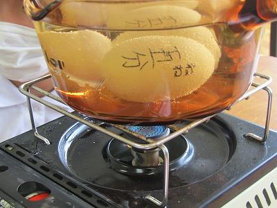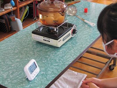 5年家庭科でゆで卵を作ります。