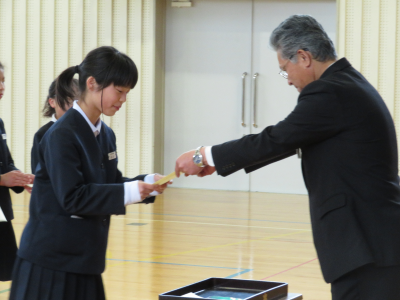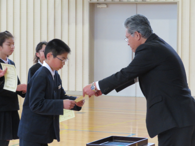 4月15日(月)の児童朝会で,前期委員会における委員長の任命式がありました。