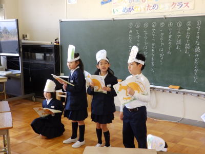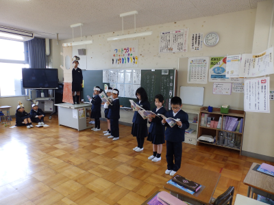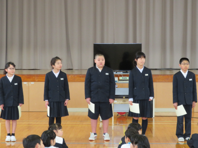 それぞれの委員長がどのような学校にしていきたいか,そのためにどんなことをしていくかを全校児童の前で発表しました。児童一人一人が小木小学校の一員であり,みんなで力を合わせてよりよい学校にしていこうという想いを感じることができました。