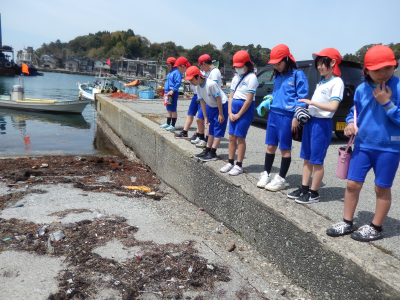 4月23(火) 5年生が里海科の学習で小木の町内のごみの調査をしました。