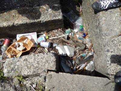 5年生はこれまでの学習で,小木の町のごみを減らしたいという想いを持ち,発信してきました。しかし,町のごみは減っていないという事に気づき,どんな場所にどんな種類のごみがあるのかを調べました。