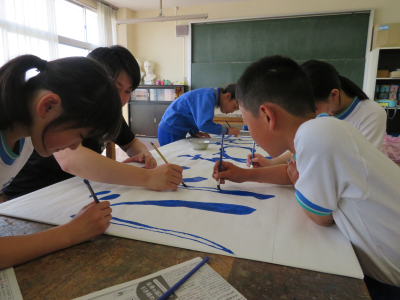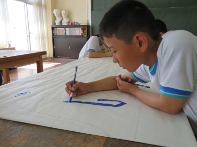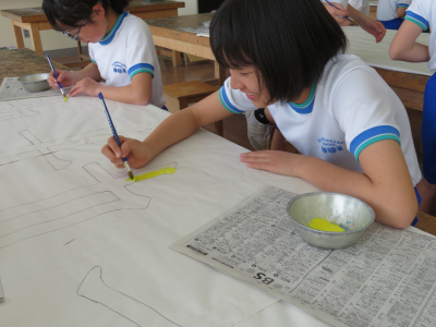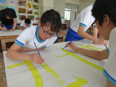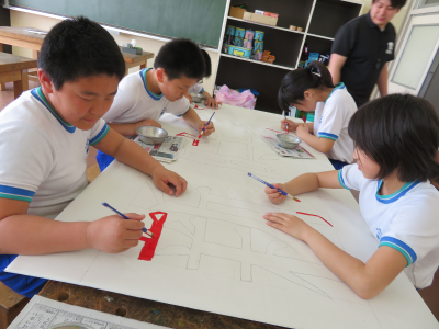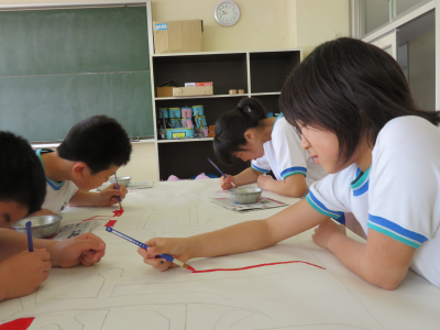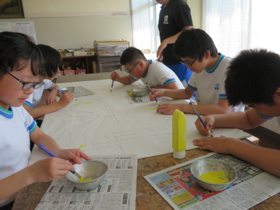運動会が近づくにつれて,その準備も着々と進んでいます。毎年,掲揚台の下に並べられている運動会のスローガンは6年生が制作しています。それぞれのチームに分かれて分担を決め,ポスターカラーを塗って仕上げます。はみ出さないように丁寧に塗っている姿から,6年生の運動会に対しての思いを感じることができました。小学校生活最後の運動会,競技だけでなく準備の面でも悔いの残らないように頑張ってほしいです。