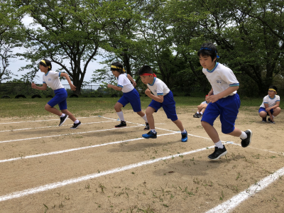 5月18日(土曜日)に小木小学校の運動場にて運動会が行われました。子どもたちはこの日のために一生懸命練習を積み重ねてきました。天候も晴天となり,子どもたちの頑張りが届いたのでしょう。