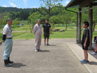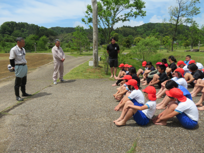 縄文真脇遺跡公園で真脇遺跡体験館の方にご協力をいただき,田植え体験を行いました。