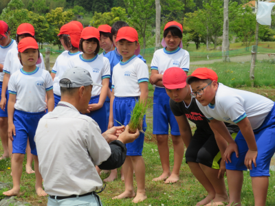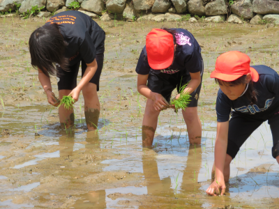 6年生は去年に引き続き2回目,5年生は初めての田植えとなりました。