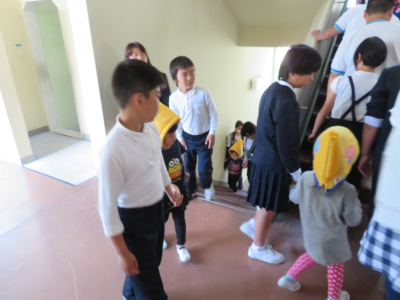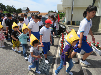 小木こども園と合同で地震と津波を想定した避難訓練が行われました。